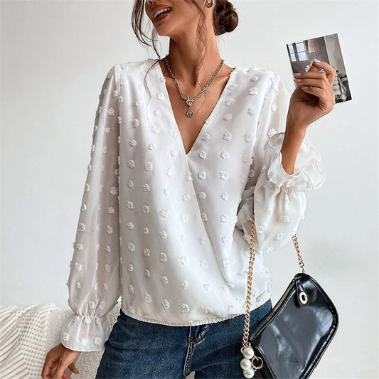 Stella's Radiant V Neck Lantern Sleeve Blouse